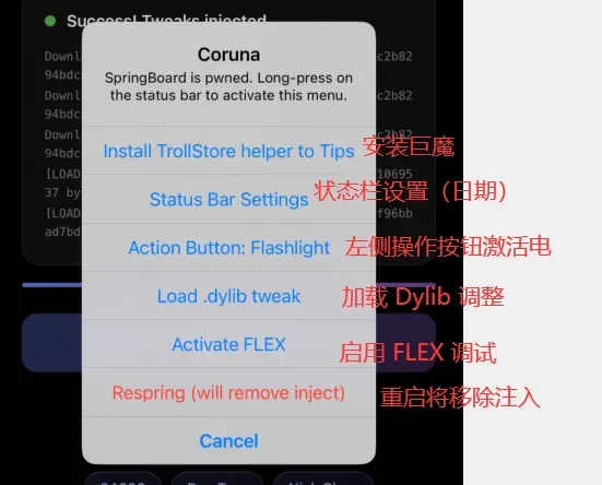自从 johnny 开发者针对 Coruna 越狱,发布一些兼容 Coruna 越狱插件,这些插件无需重启,直接注入就能生效,比以往的越狱更加快。