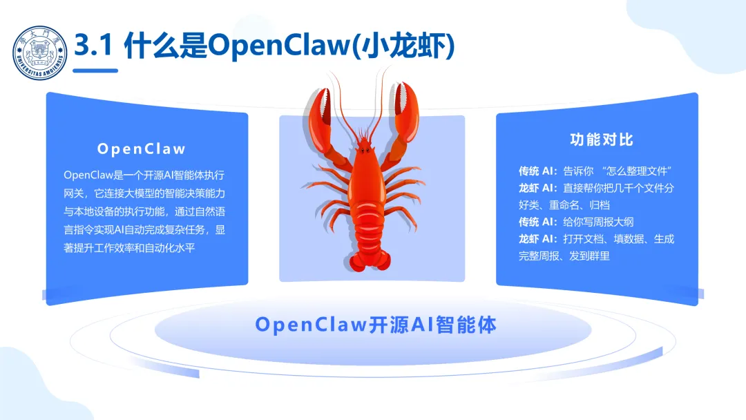 本文来自“厦门大学:智能体OpenClaw(小龙虾)应用实践”,文末附免费下载网盘链接。