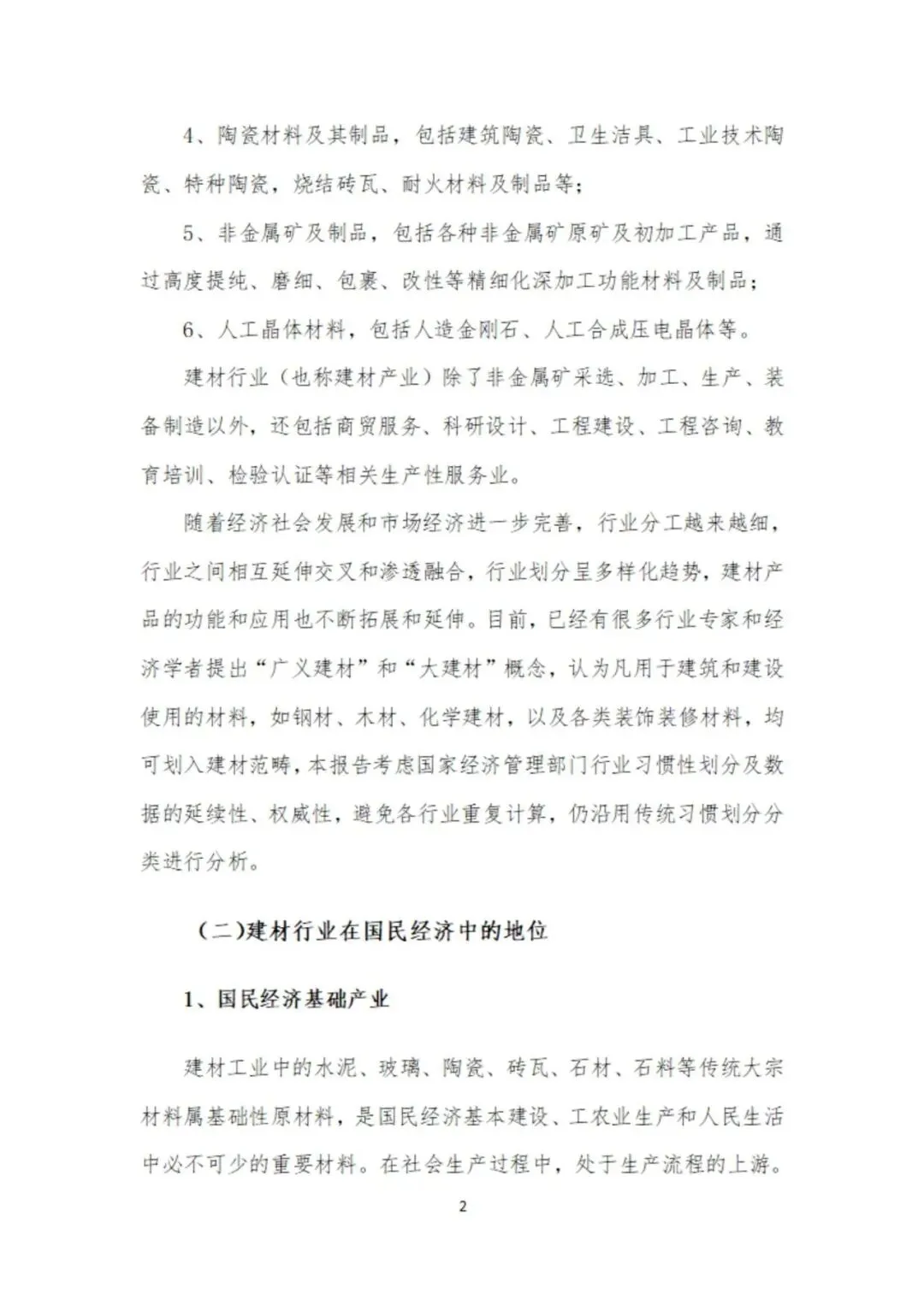 建材行业是国民经济重要原材料产业,按《国民经济行业分类》(GB/T4754-2017)包括非金属矿采选业和非金属矿物制品业两大类11个中类30个小类。实质上属于无机非金属材料产业。