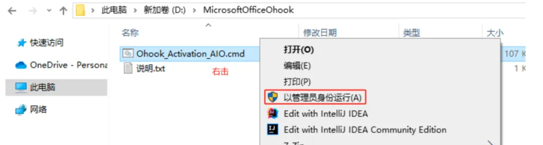 1.选中文件,鼠标右键,点击以管理员身份运行