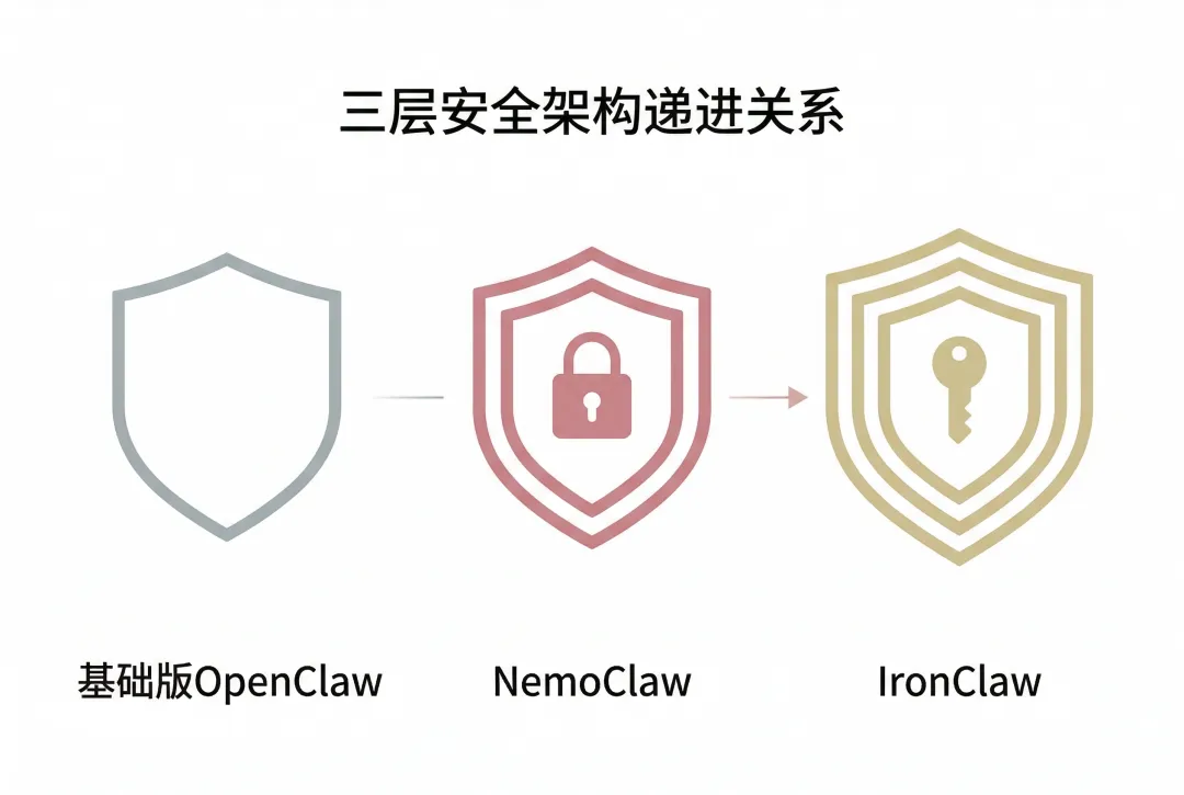 NEAR IronClaw 走的是另一条路,用Rust重写,零信任架构。所有工具在WebAssembly沙箱里执行,凭据存在TEE硬件级加密金库里,大模型在推理时根本「看不到」API密钥。即使被提示词注入攻击了,密钥也拿不走。它还对出站流量做深度扫描和内容清洗,即使模型被诱导生成了违规输出或企图执行递归死循环,严格的资源上限和网络白名单也能把爆炸半径限制在单一WASM模块内。