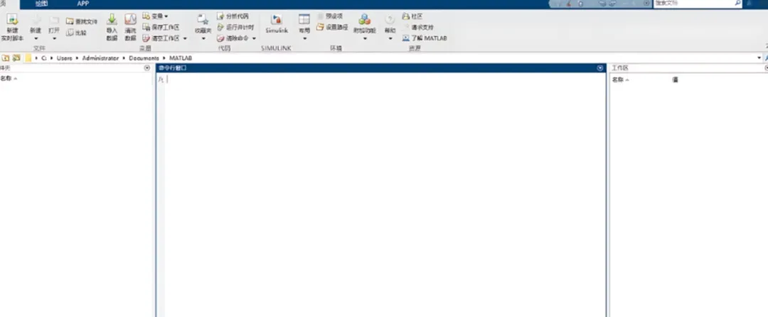 Matlab R2025主界面分为4个核心区域: