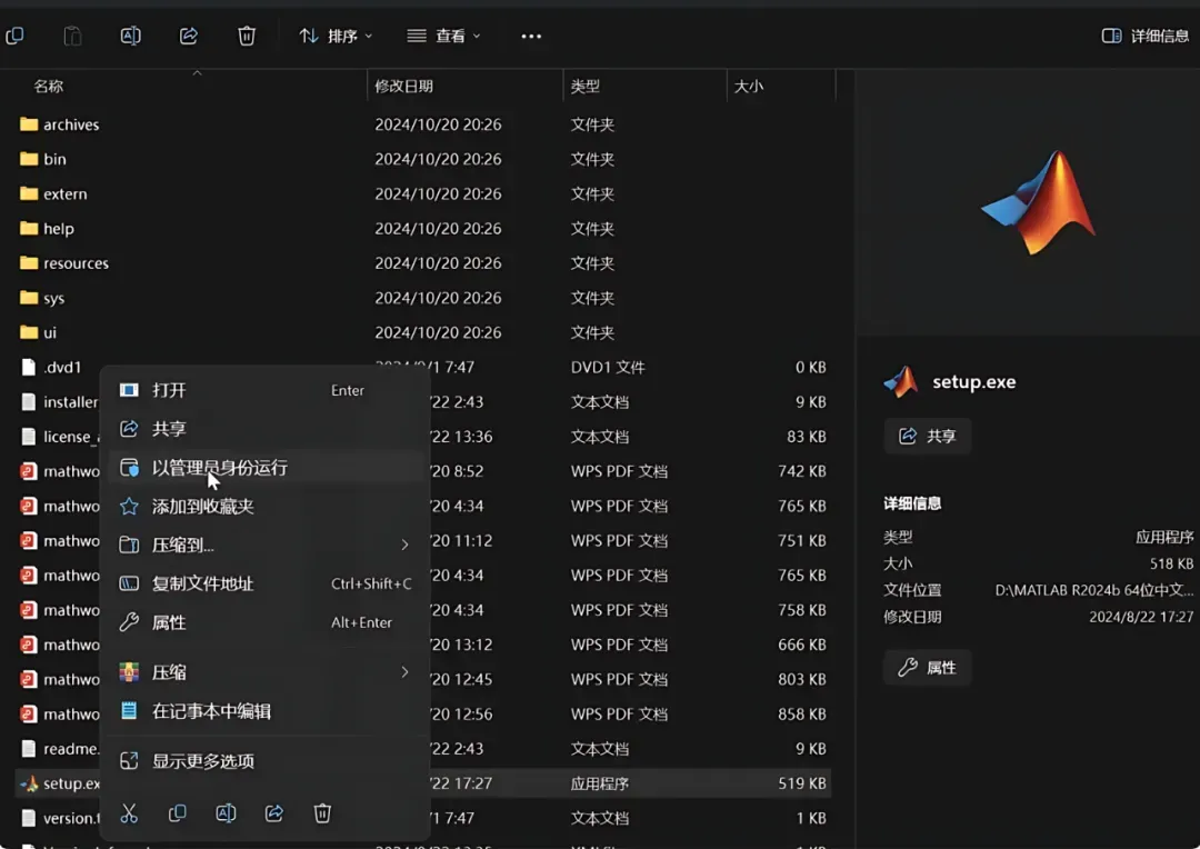 3、找到【setup】应用程序,右键选择【以管理员身份运行】它