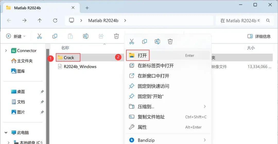 14、回到Matlab R2024b文件夹,找到【Crack】文件夹,右键【打开】它