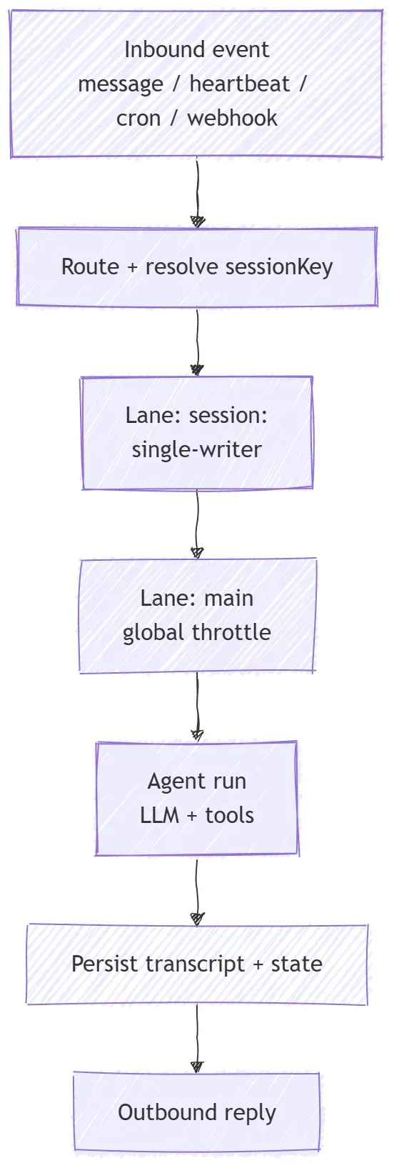 OpenClaw 通过一个感知通道(lane-aware)的 FIFO 队列来强制执行这一点: