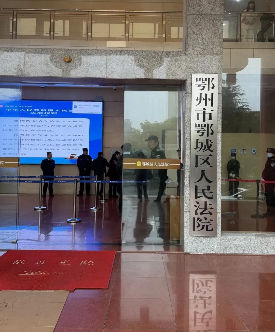 鄂城区法院门口。