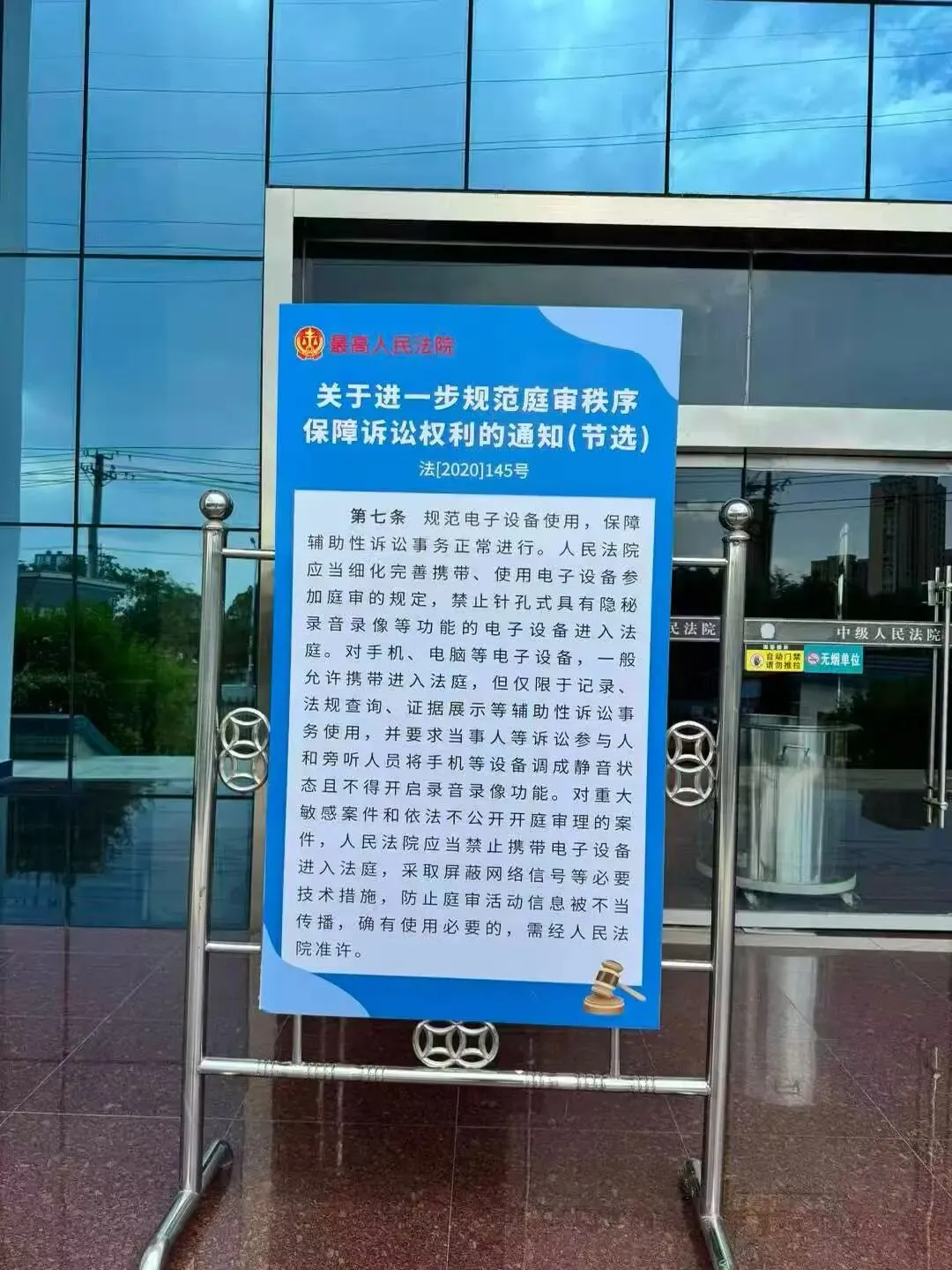 立于某法院门口的通知牌。