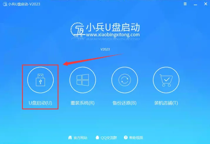 准备工作完成后,就可以开始制作启动 U 盘了。这里以小兵U盘启动工具为例,其他工具的操作类似。