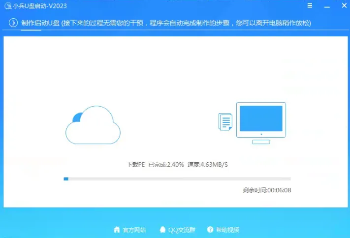 访问小兵U盘启动官网(www.xiaobingxitong.com),下载最新版本的工具。分为在线版和离线版,新手推荐下载在线版。运行前尽量退出杀毒软件,以免被误杀或在写入关键项时被拦截。将准备好的 U 盘插入电脑的 USB 接口。最好直接插在主板背后的 USB 接口,而不是前置面板接口(前置接口可能供电不足)。打开小兵U盘启动工具,主界面会显示检测到的 U 盘盘符。确认盘符无误后,选择"U盘启动"模式。点击"制作启动U盘"按钮。此时会弹出一个提示框,告知制作过程会格式化 U 盘,所有数据将被删除。请再次确认 U 盘里没有重要数据!选择制作模式:"制作启动U盘"仅制作 PE 系统;或者选择"制作启动U盘+系统",工具会自动下载系统镜像并写入 U 盘(推荐新手选择)。点击开始制作,工具会自动下载 PE 系统并写入 U 盘。这个过程可能需要 10-30 分钟,取决于网络速度和 U 盘读写速度。制作过程中不要拔掉 U 盘,不要关闭程序!💡 进度提示: 制作过程中,你可以看到进度条和当前正在执行的操作(如"下载PE系统"、"写入U盘"、"验证文件"等)。如果进度长时间卡住不动,可能是网络问题,可以稍等片刻或关闭杀毒软件重试。制作完成后,工具会提示"启动盘制作成功"。但为了保险起见,最好再检查一下。