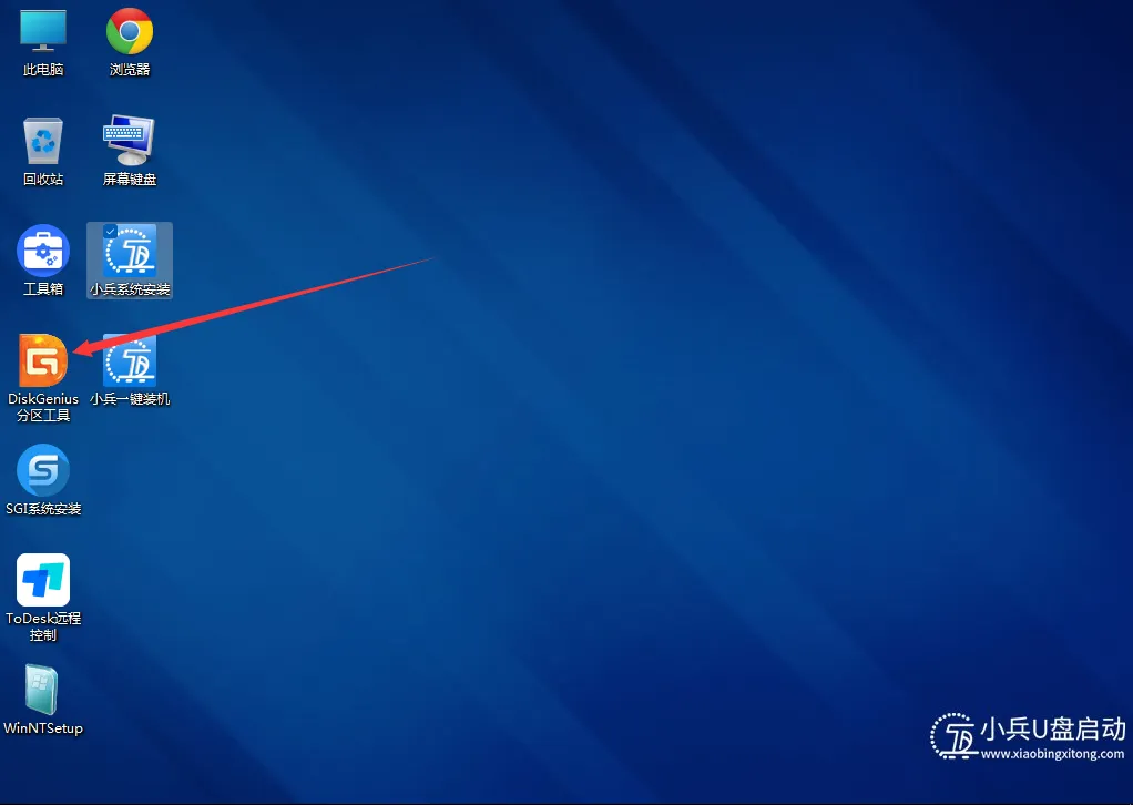 在 DiskGenius 中选中要操作的硬盘,右键选择"转换分区表类型为 GUID 格式"(即 GPT 格式)。如果显示灰色不可选状态,说明已经是 GPT 格式,则跳过此步骤。选中所有现有分区,右键选择"删除所选分区",清空硬盘,点击工具栏“快速分区”。删除操作不可恢复,请确认数据已备份!点击工具栏的"快速分区"按钮,设置分区方案:系统盘 100GB(或根据你的需求),分区类型为 GPT,分区数量 2个(C盘和D盘)。点击确定,工具会自动创建 ESP 分区、MSR 分区以及你设置的 C盘和D盘。分区完成后,查看分区列表确认无误。💡 MBR 分区注意事项: 如果使用 Legacy + MBR 模式(老电脑或 Win7),分区时需要设置活动分区。创建完分区后,右键 C盘选择"激活当前分区"。GPT 模式不需要这个步骤。分区完成后,就可以开始安装系统了。这里以小兵 PE 的"小兵系统安装"工具为例。
