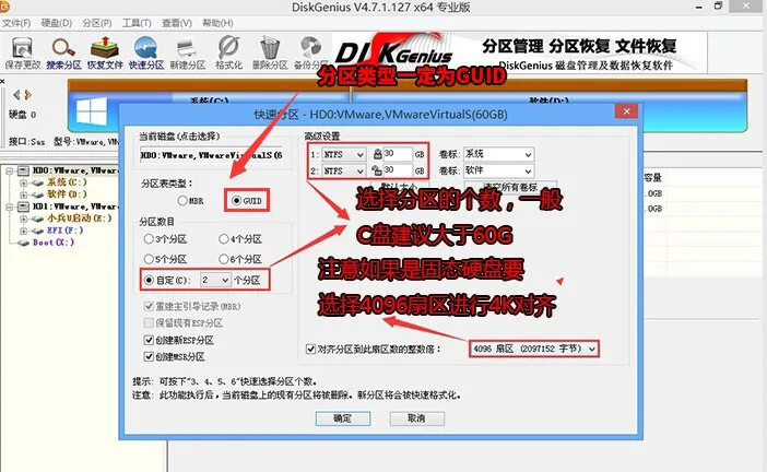 分区建议✓C盘(系统盘):80GB - 120GB(最低 60GB),用于安装系统和常用软件✓D盘(数据盘):剩余空间,用于存放文档、照片、视频等个人数据✓ESP分区(GPT模式):300MB 左右,自动创建,系统引导分区✓第一块硬盘(SSD):系统盘,全部作为 C盘,100%用于系统和软件✓第二块硬盘(HDD):数据盘,不分或简单分区,用于存放数据✓优势:系统和数据分离,系统崩溃重装不影响数据,性能最优第三步:执行分区操作(这里以UEFI引导创建GPT分区为例)现在开始实际分区。以下以 GPT 分区方案为例(新机型推荐):
