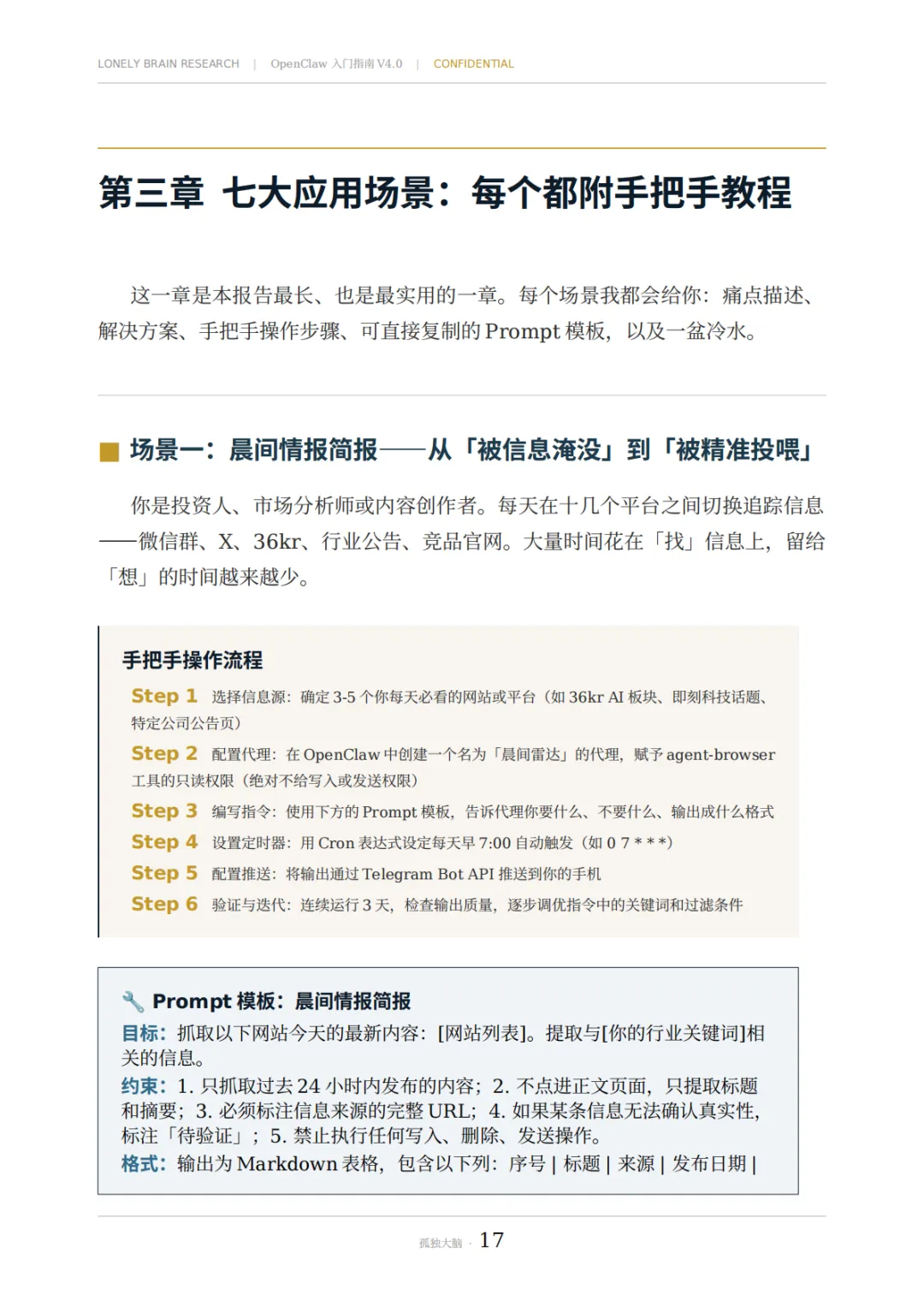 晨间情报简报 | 信息降噪与聚合 | 只读权限、多源交叉验证 |
