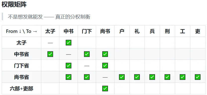 cfg_path = pathlib.Path.home() / '.openclaw' / 'openclaw.json'cfg = json.loads(cfg_path.read_text())AGENTS = [{"id": "taizi", "subagents": {"allowAgents": ["zhongshu"]}},......{"id": "libu_hr", "subagents": {"allowAgents": ["shangshu"]}},{"id": "zaochao", "subagents": {"allowAgents": []}},]agents_cfg = cfg.setdefault('agents', {})agents_list = agents_cfg.get('list', [])existing_ids = {a['id'] for a in agents_list}