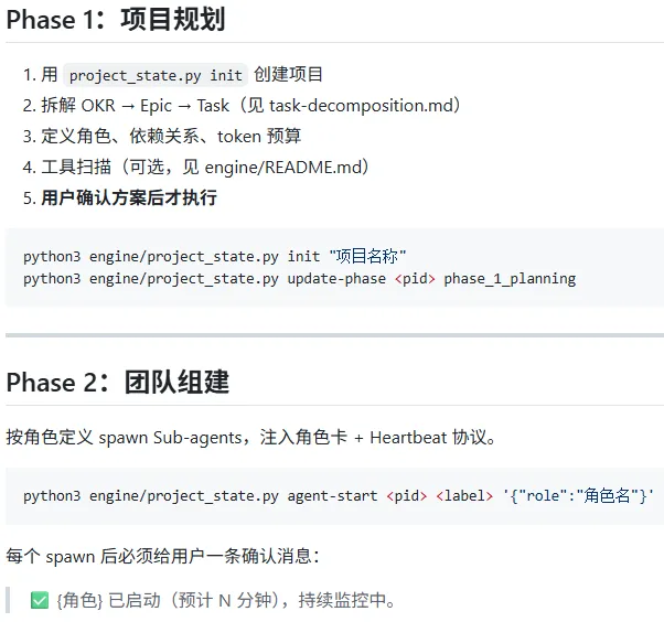 上面只是介绍了几个md文件,这几个文件如何关联起来的呢?在整个项目的SKILL.md中,明确定义了各流程。