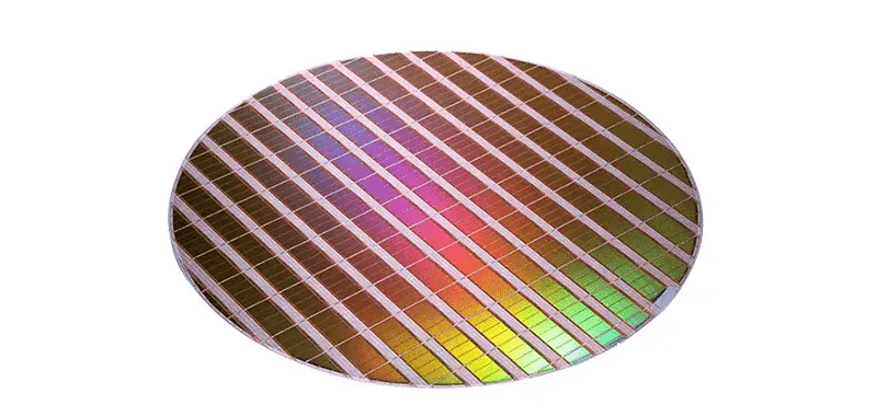 然后,用金刚石刀片把硅柱切成薄片,每片厚度不到1毫米。这就是晶圆。