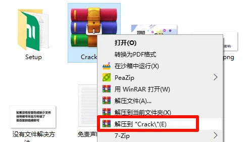 13.回到之前解压好文件夹,找到压缩包【Crack.zip】,鼠标右键选择【解压到Crack\】。