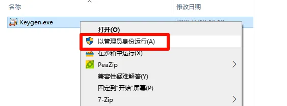 14,打开解压好的【Crack】文件夹,找到应用程序【Keygen.exe】,鼠标右键选择【以管理员身份运行】。