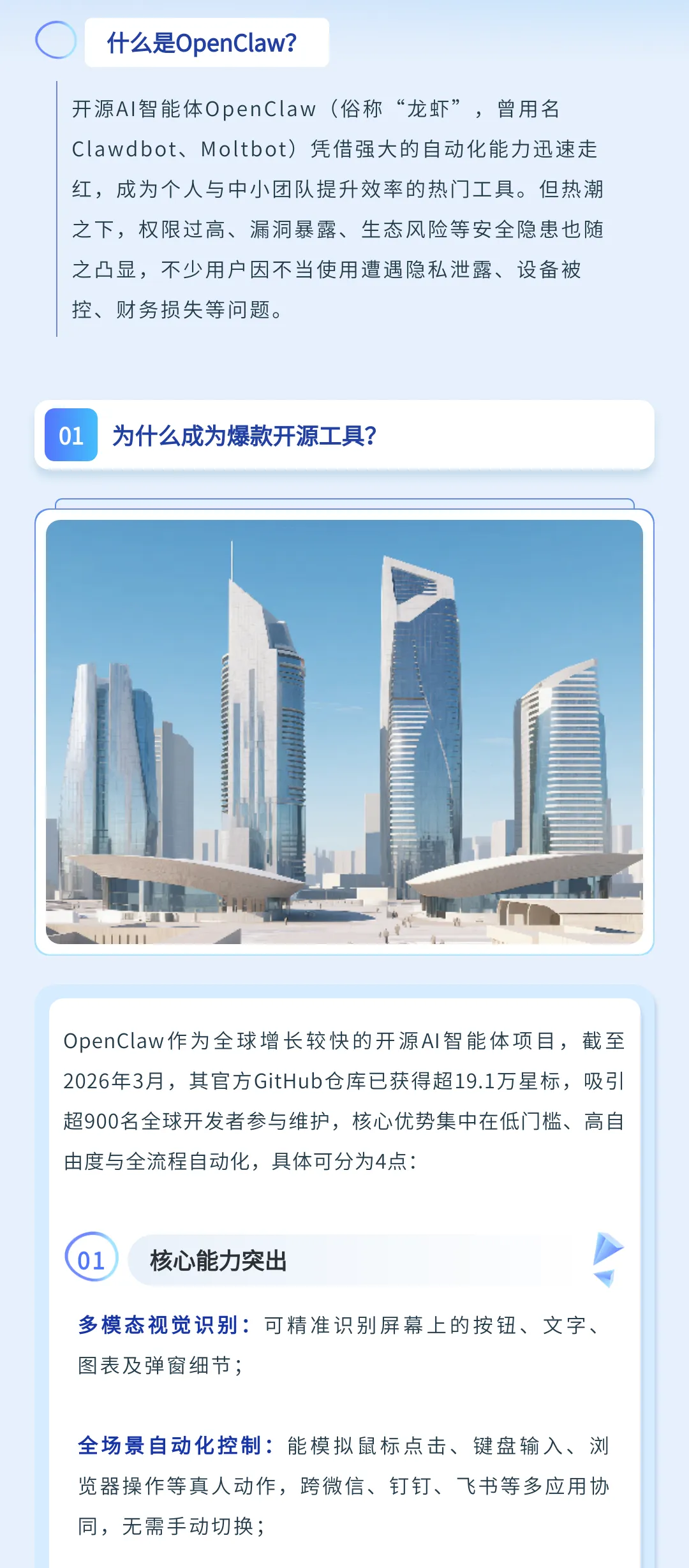 一款名为OpenClaw的开源AI智能体强势刷屏科技圈,成为2026年全球增长最快的开源AI项目。不同于传统只能“动口”的对话式AI,OpenClaw以“本地优先、主动执行”为核心,化身能真正“动手干活”的“数字员工”。