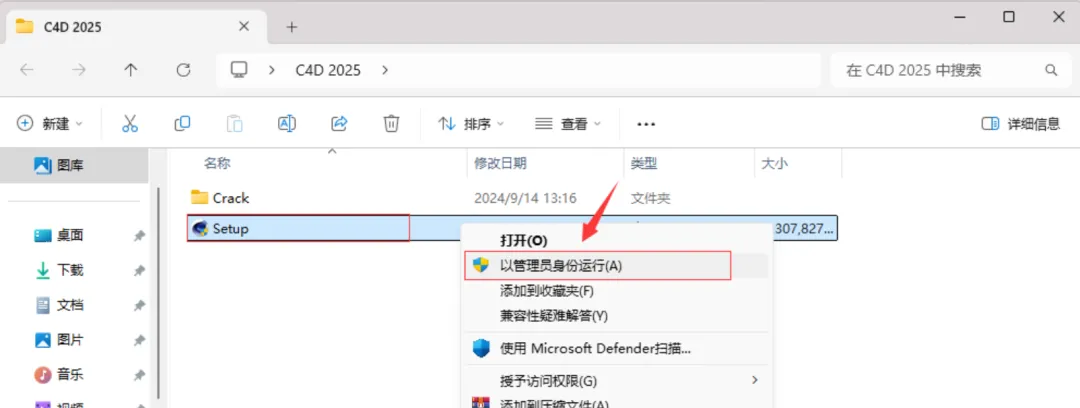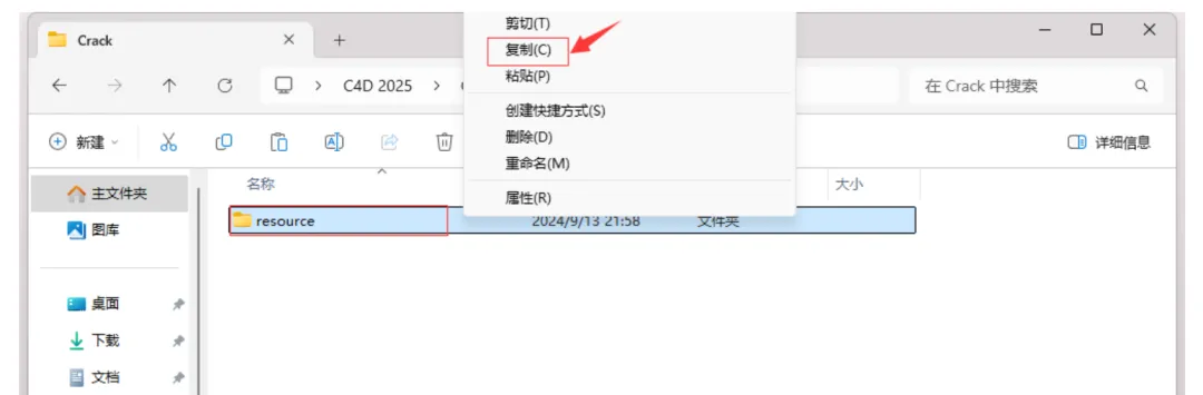 9.打开安装包解压后的【C4D 2025】文件夹,双击打开【Crack】文件夹