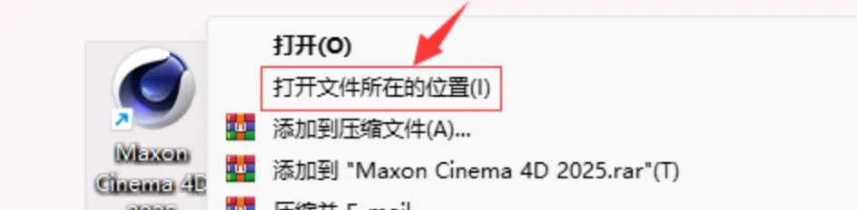 12.鼠标右击桌面【Maxon Cinema 4D 2025】图标选择【打开文件所在的位置】。