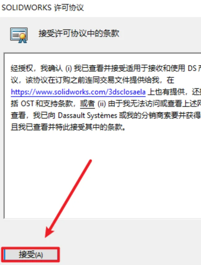19.勾选我接受SOLIDWORKS条款,点“现在安装”
