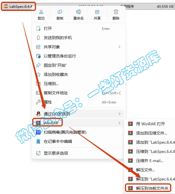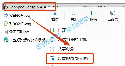 2.打开刚刚解压的文件夹,鼠标右键点击【LabSpec_Setup_6_4_4_10.exe】选择【以管理员身份运行】