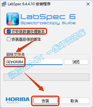 4.勾选【仅安装数据处理版本】,选择软件安装路径,将首字符C改为D表示安装到D盘,安装路径不要出现中文,点击【安装】