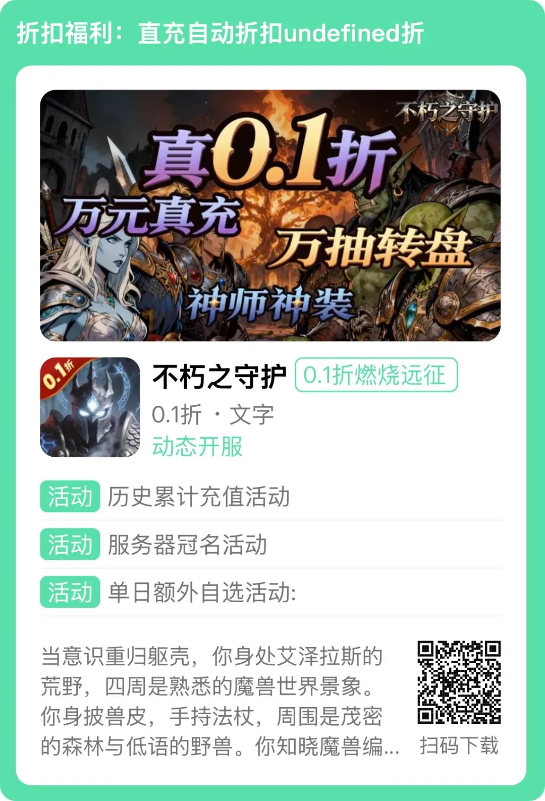 不朽之守护(0.1折燃烧远征)——火爆开启