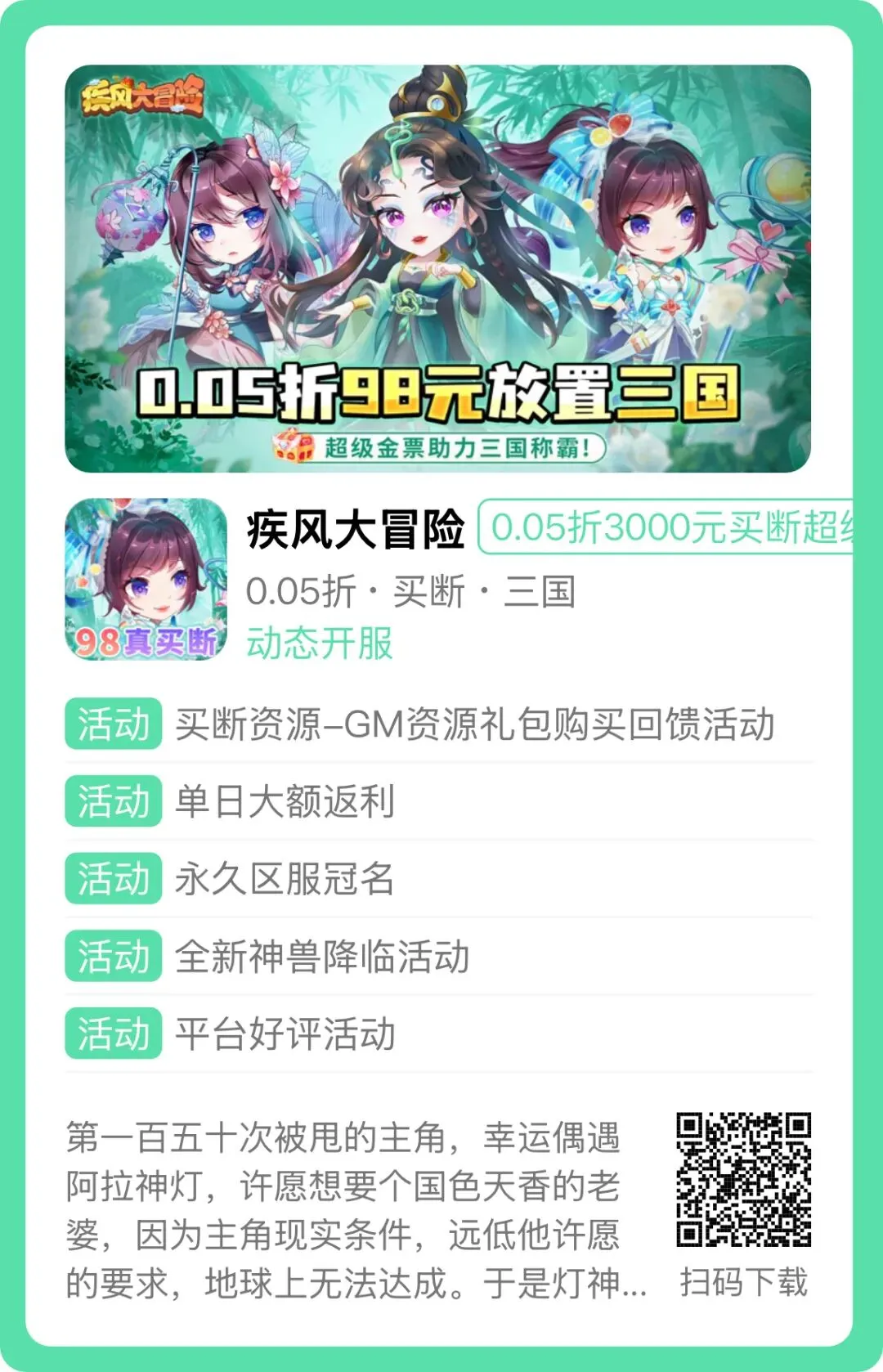 1、永久0.05折,登陆送秘境探寻令*10,送VIP3