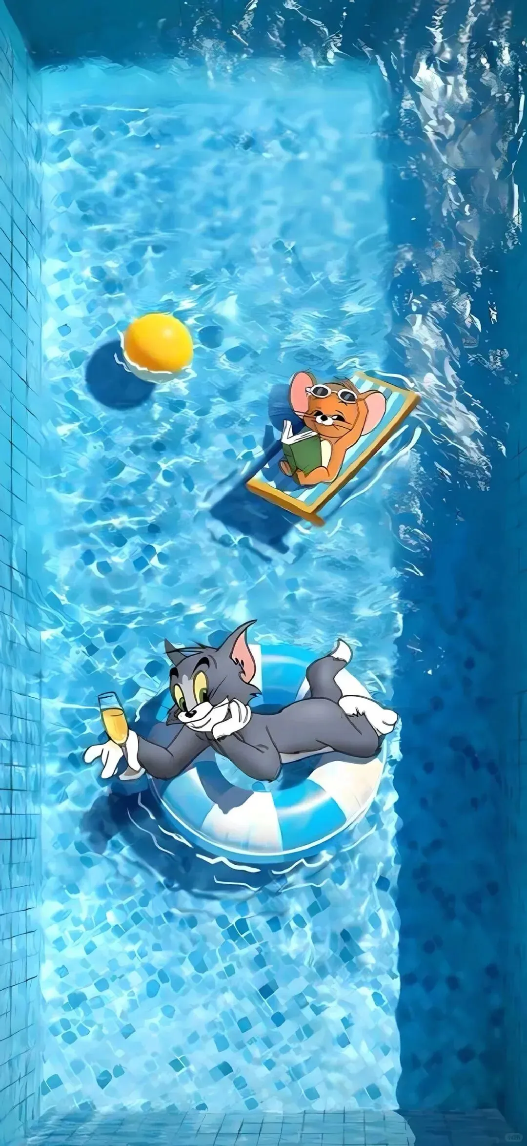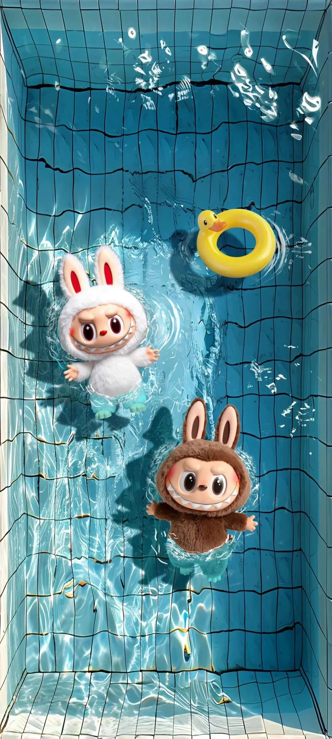 这组壁纸完美适配 IOS 系统的景深交互,滑动屏幕时,前景与背景会产生细腻的位移感,像在指尖推开一扇通往另一个世界的门。你看泳池里的 Labubu 和蜡笔小新,毛绒质感的玩偶与波光粼粼的水面形成清晰的虚实对比,阳光在水面折射出的光斑随着滑动轻轻晃动,仿佛下一秒就能听见水花溅起的声音;汤姆和杰瑞慵懒地躺在泳圈上,前景的卡通形象鲜活立体,背景的泳池瓷砖与水波层层晕开,连空气里都透着夏日的慵懒与惬意;躲在墙后的粉色 Labubu,毛茸茸的身体与墙面的爱心涂鸦形成温柔的层次,眼神里的机灵劲儿仿佛要从屏幕里跳出来,软萌感直接拉满。