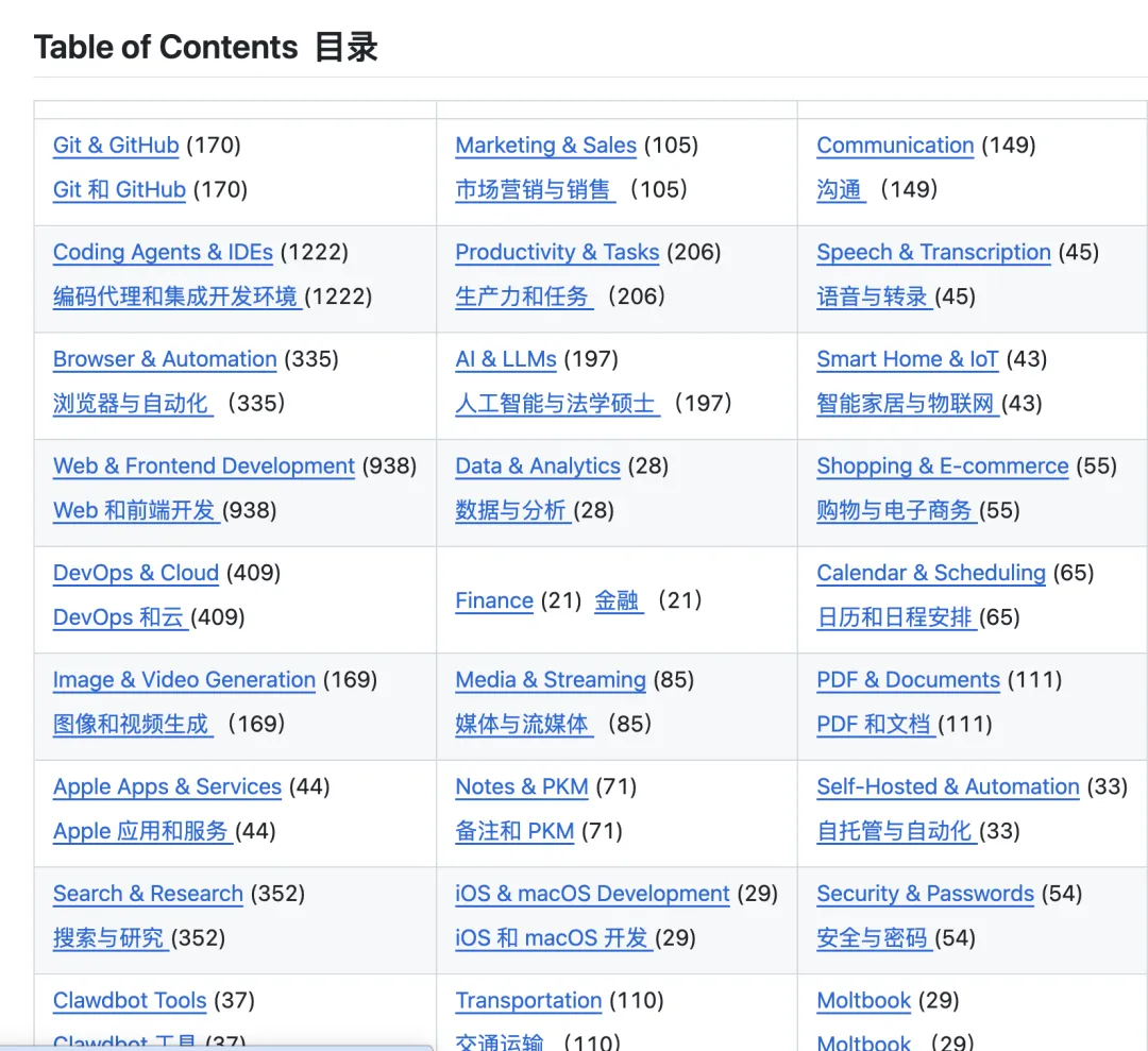 里面从openclaw官方社区,精选了包括30多个方向,5000+优质skill;