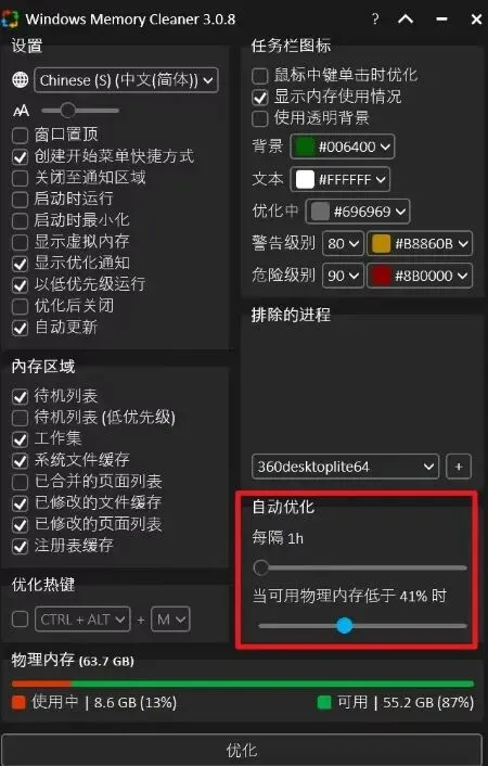 这个工具比普通内存清理软件多了一些设置,可以按需要去调整。