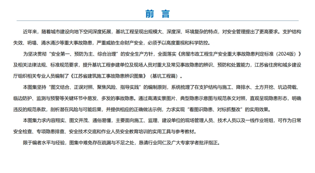 【学习下载】建筑施工事故隐患辨识图集(基坑工程)做有价值的安全知识传递,欢迎来到安全资料通。今天为大家分享的是江苏省住房和城乡建设厅2026年3月刚发布的《江苏省建筑施工事故隐患辨识图集》(临时用电工程)。(文末获取免费下载方式)。。。。。。内容过多,共58页,以下略(私信发送“起重吊装”获取电子高清原版)