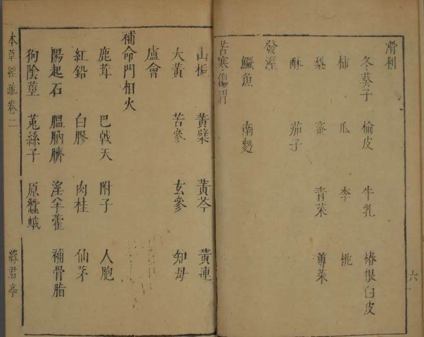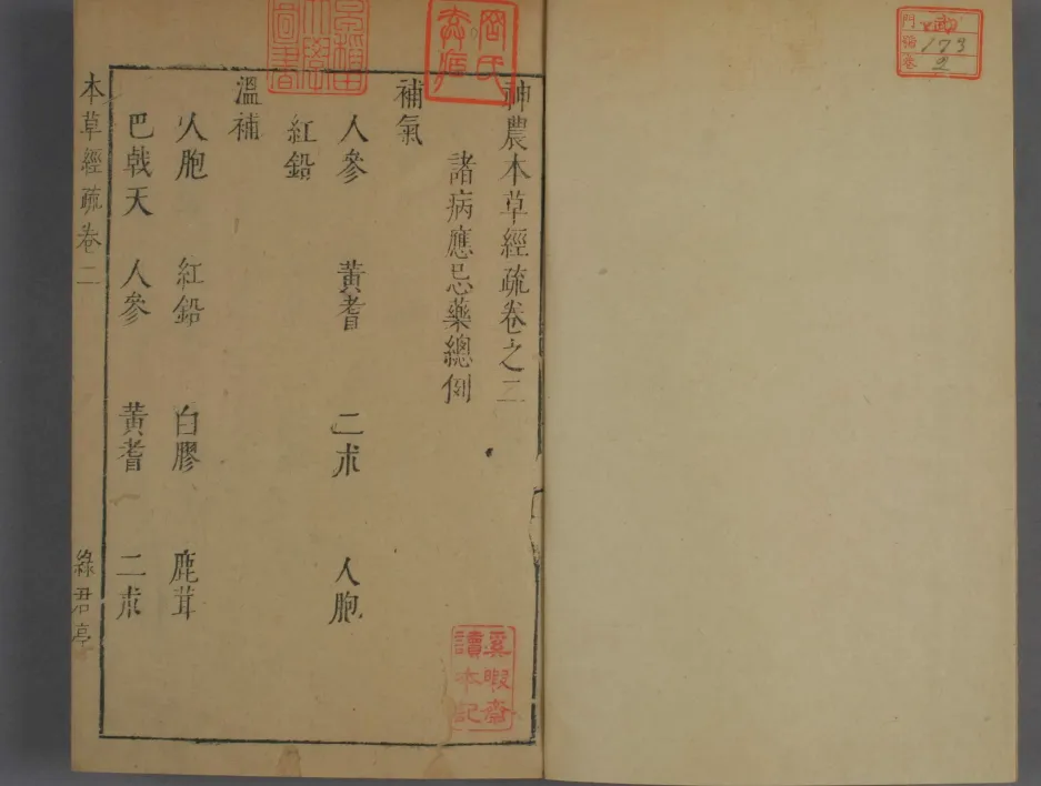 卷一至卷二为《续序例》,包含用药总论、七方十剂理论、药性生成论等30余篇基础理论文章,并分列“诸病应忌药”七门(阴阳表里虚实、五脏六腑虚实、六淫、杂证、妇人、小儿、外科),构建了辨证用药的理论体系。 卷三至卷三十按《证类本草》分类法编排药物,涵盖玉石部、草部、人部、兽部、禽部等,末卷收载补遗药品27种。每味药物均设“性味归经”“主治参互”“简误”三项: 性味归经:继承《本经》记载并作现代注解; 主治参互:列举经典配伍方案及临床验方,如人参“阴虚火旺者忌用”的禁忌原则; 简误:考证药效及处方宜忌,纠正时人用药谬误。