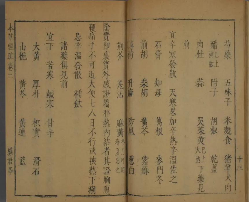 缪希雍结合四十余年临床实践,系统阐释《本经》药性理论,提出“据经以疏义,缘义以致用”的注疏原则。书中保存了“咸能入血,甘能补血”等经典药性理论,对喉痹、金疮等病症的用药解析具有重要参考价值。其注疏体例深刻影响了清代《本草崇原》等著作的编撰方式,现代研究表明,书中关于药物炮制与剂量控制的内容对中药标准化研究具有参考价值。