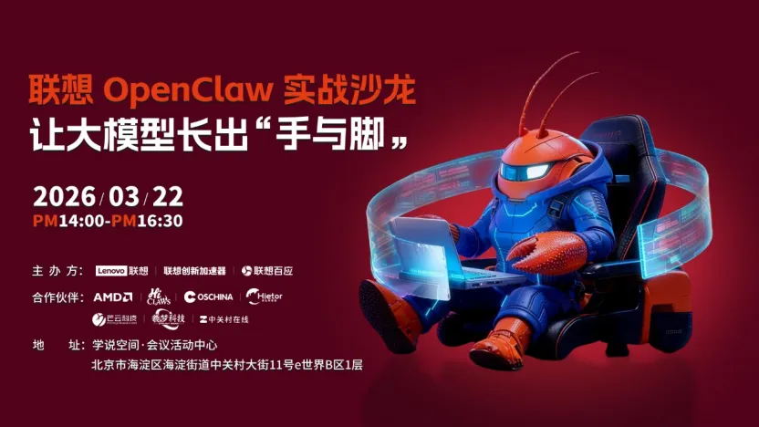 OpenClaw虽然好,但存在部署难,配置繁,安全隐患,算力适配困难等客观痛点,并且困扰着众多研究者与爱好者。为破解这一困境,联想将在3月22日于中关村举办OpenClaw线下沙龙,来自联想、AMD、Gapp.so的行业技术大牛亲授落地秘诀,与行业开发者直观、深入交流,还有机会赢取联想NUC迷你主机!现面向所有深耕OpenClaw研究、有本地化部署需求的用户,正式开启活动招募!