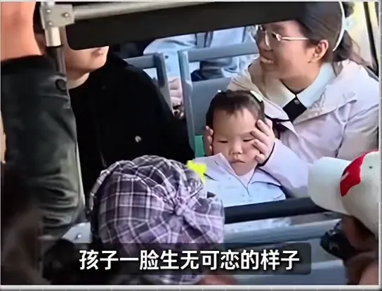 又看见了妈妈捂着孩子耳朵,孩子一脸生无可恋的样子