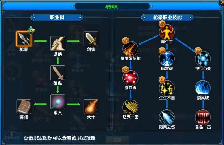 作为游侠一转职业,枪豪凭借血厚防高的优势稳居开荒榜首,其4米范围AOE技能“暴雨梨花枪”,清怪速度拉满,单人刷本轻松无压力。二转可朝输出向戟神或防御向刀君发展,分别适配团队输出与抗伤需求,是前期开荒的核心职业。