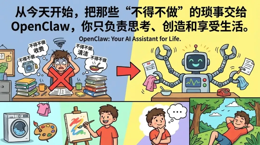 从今天开始,把那些 “不得不做” 的琐事交给 OpenClaw,你只负责思考、创造和享受生活。