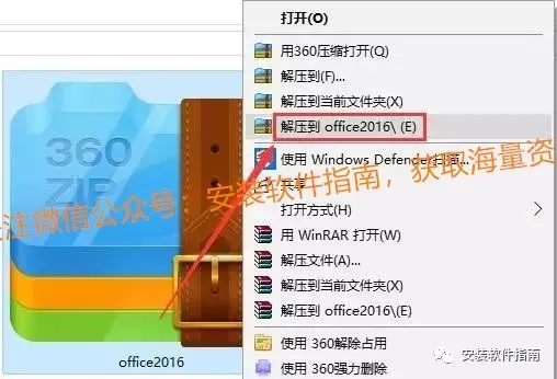 1、鼠标右键点击【office2016】,选择【解压到office2016 】等待解压完成