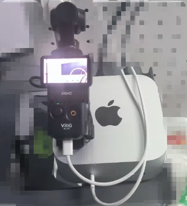 连接方式也非常的简单,就是直接用数据线,把Pocket 3连到Mac mini上,充当USB摄像头。