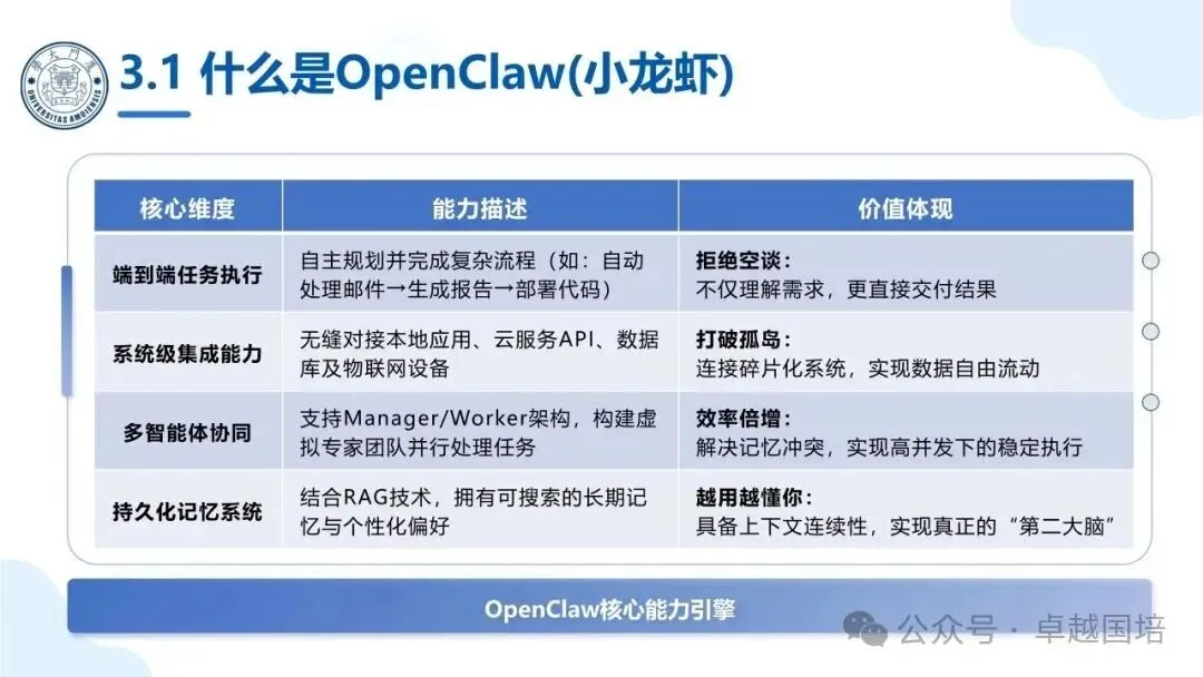 厦门大学:智能体OpenClaw(小龙虾)应用实践|附98页PDF文件下载【关注公众号,并回复“小龙虾”获取下载链接】以下为报告节选:权责声明:★来源:厦门大学本文及文内图片版权归原作者及原出处所有,内容为作者观点,并不代表本公众号赞同其观点和对其真实性负责。转载出于非商业性目的,旨在分享,如涉及版权等问题,请立即联系我们,我们将予以更改或删除相关文章,以保证您的权利。点分享点收藏点在看点点赞