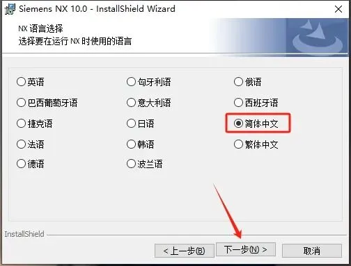 21、勾选【简体中文】,再点击【下一步】。
