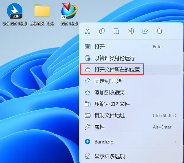 28、右键桌面上的【NX 10.0软件图标】,点击【打开文件所在的位置】。