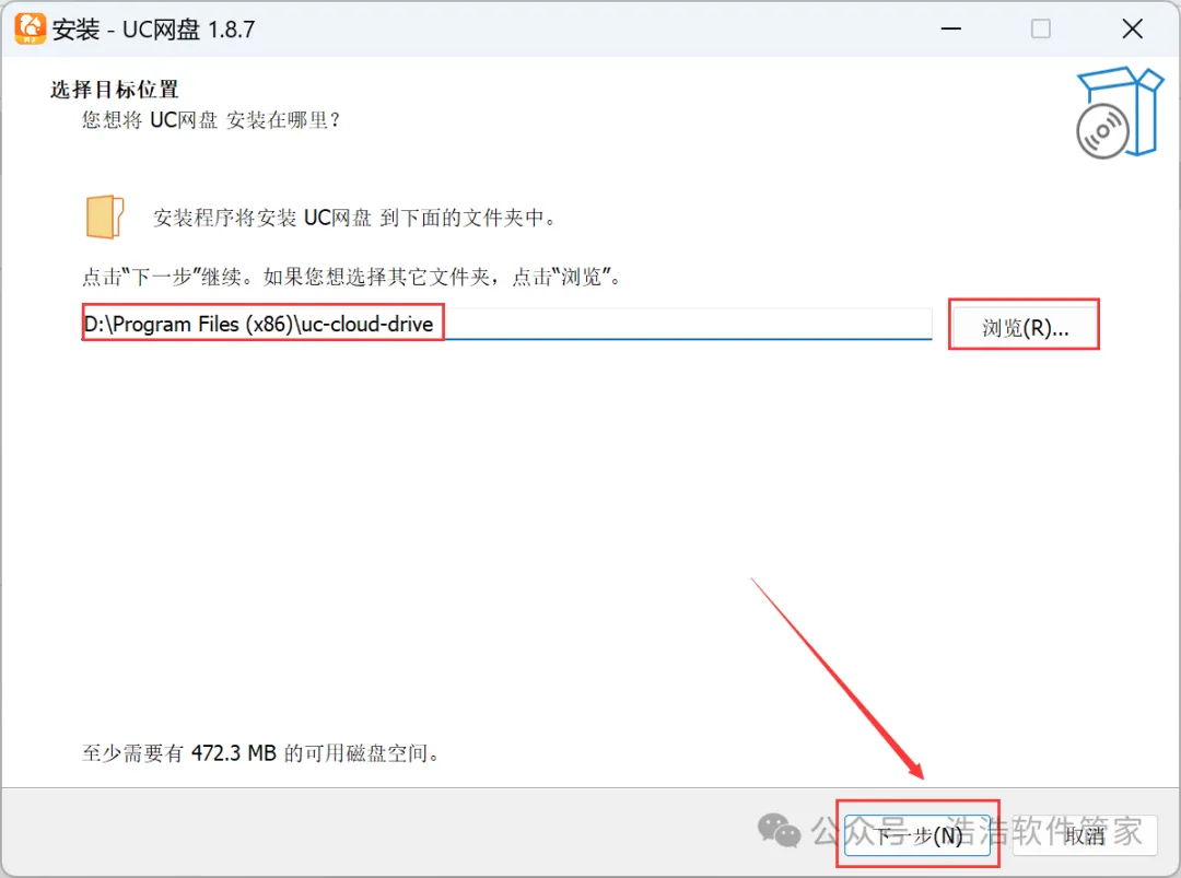 4、软件默认安装在C盘,可自定义更改软件安装位置,这里小编选择安装在D盘;点击【下一步】