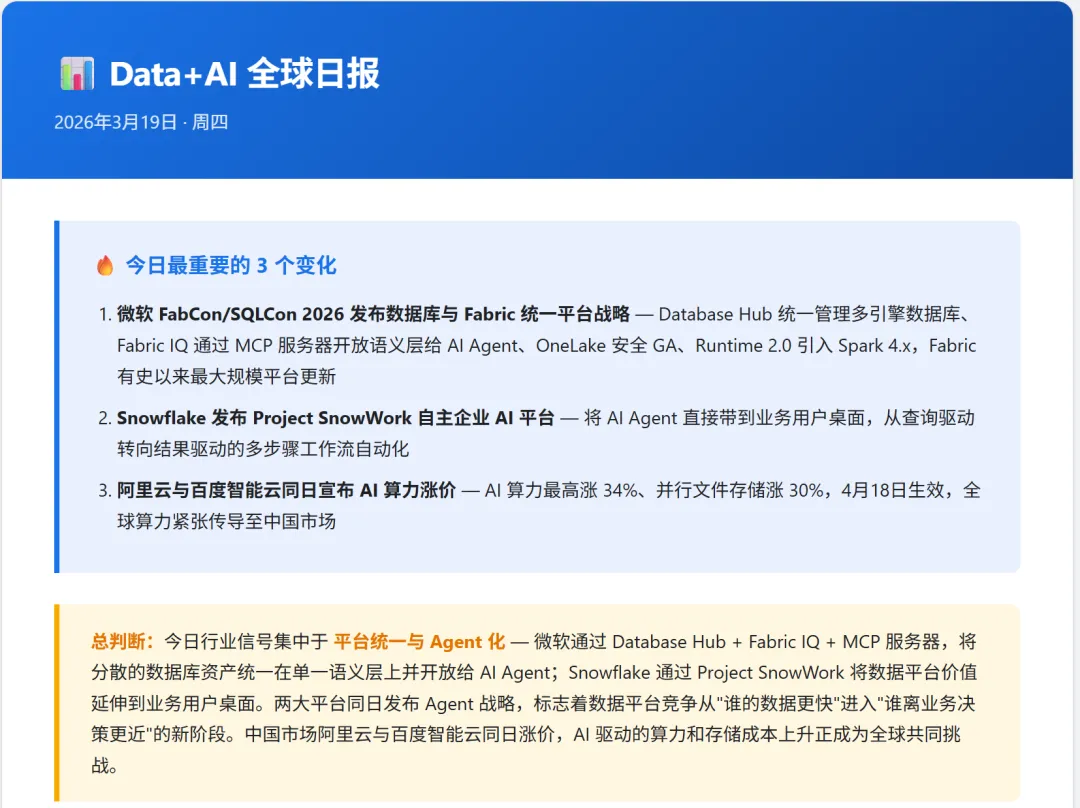今天,看到几家大厂密集发布的新动作,却在不约而同地回答另一个更底层的架构命题:企业里的 Agent,到底该站在什么样的数据基础设施之上?