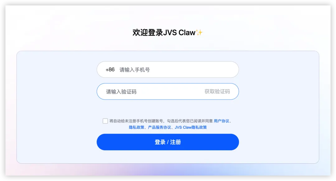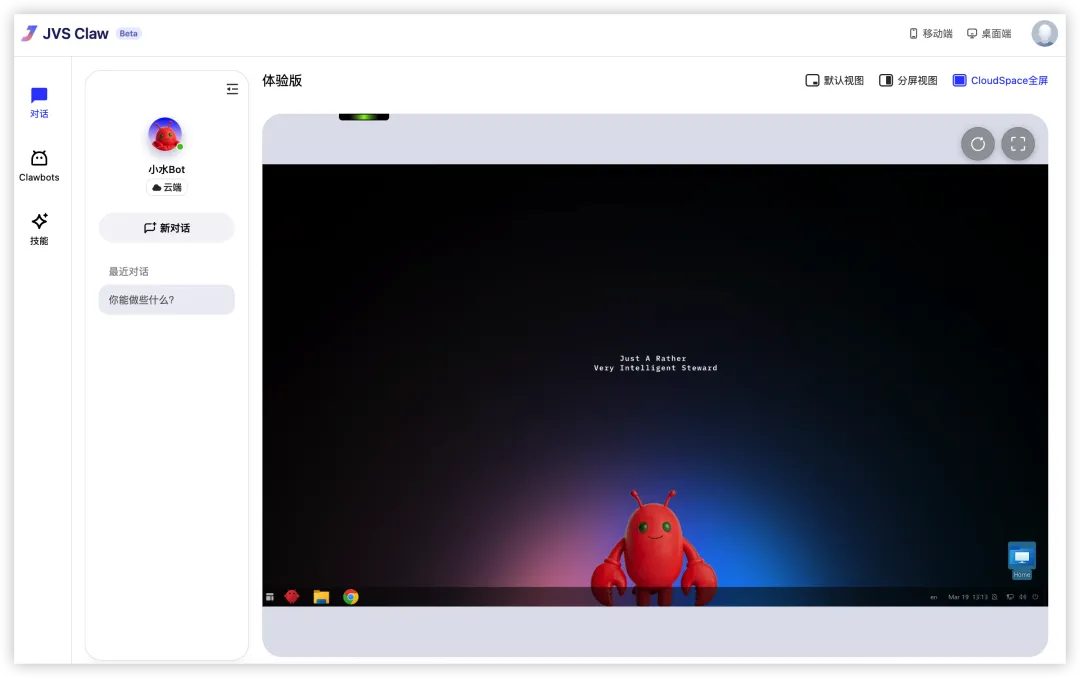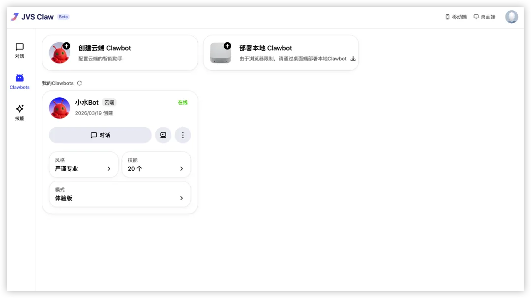 回到页面填入邀请码,就能进入 JVS Claw 的主界面了。