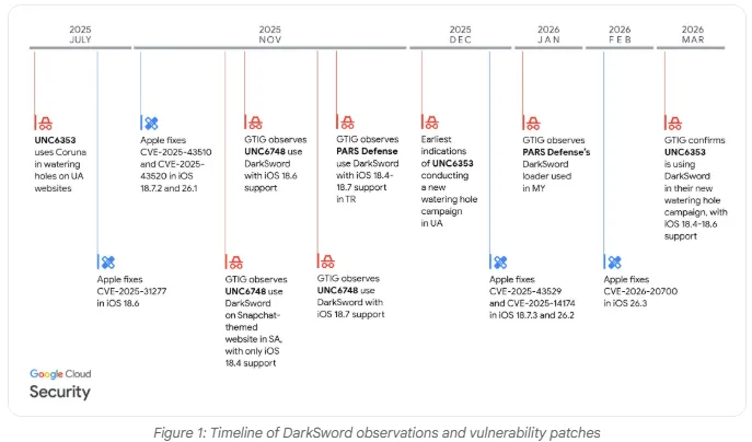 谷歌威胁情报小组评估称,DarkSword和Coruna被各种行为者使用,表明不同地域和动机的行为者之间持续存在利用漏洞扩散的风险。