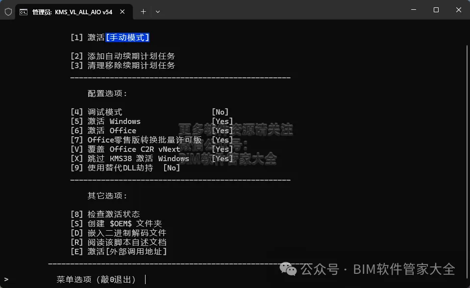 公众号关键词回复:KMS_VL_ALL_AIO开源的全能批处理激活脚本