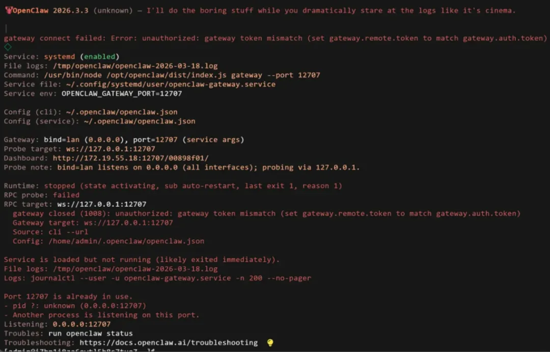 ·gateway token mismatch:令牌不匹配,RPC 连接失败